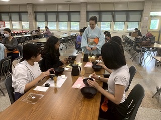 茶の湯クラブは、毎回南カフェで開催されます。ご覧になったことがありますか?会場には上品なお香の香りが立ち込め、心が落ち着きます。いつも慌ただしい中で時間を過ごしておりますが、毎回会場に入るだけで心が和みます。講師の先生方も着物をお召しになった方が多く、会場はいつも凛とした雰囲気です。日本にいてもこうした機会はなかなか経験できませんので、ここでの体験は本当に貴重なものです。 「校長先生も一服いかがですか?」と何度かお声がけをいただきましたが、無作法者の私には敷居が高く、ずっと遠慮しておりました。せっかくなので、一度お点前を拝見しておけばよかったと今頃になって後悔しています。