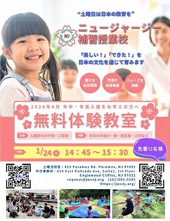 現在随時編入生、新入学生の申込を受け付けています。見学、スクリーニングを希望される方は、 Tel(201)585-0555またはEmail: request@jwsnj.orgまでご連絡ください。